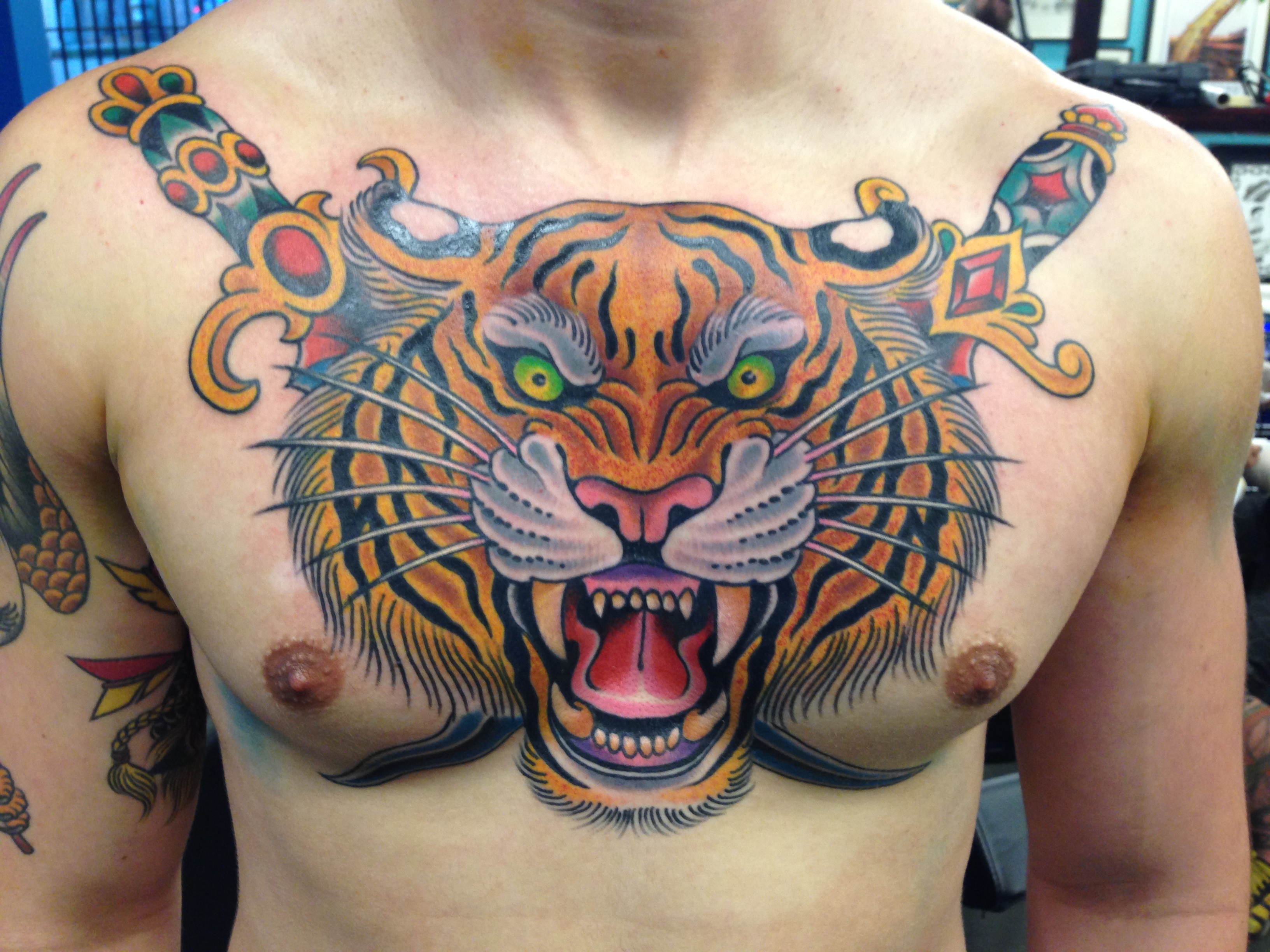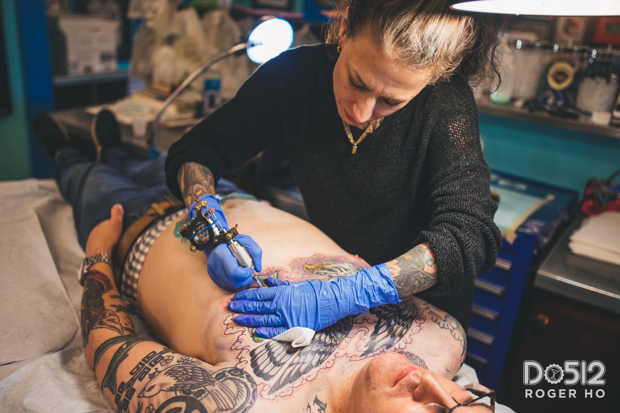 For me, people here…tattooing is very accepted here and it’s Texas, so everybody doesn’t do things by halves. If you like something here, you’re not afraid to really like it. You don’t feel very judged being here having tattoos so you can come get tattoos without worrying about it. The wearer or the client is a lot more ready to go for it.